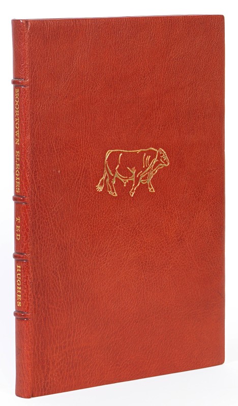 Limited edition; small folio; original full crushed morocco by Sangorski & Sutcliffe, illustration of a bull blocked in gilt on upper cover, top edge gilt, original slipcase. One of six specially bound author's presentation copies, this for Frieda Hughes (as stated in red print on the colophon, additionally signed by Frieda), from an overall edition of 175, copies, one full-page illustration by Leonard Baskin.